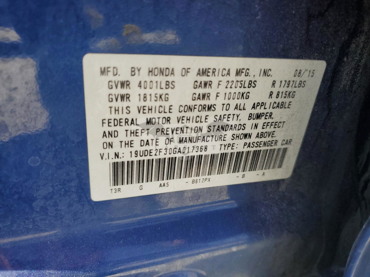 • VIN: 19UDE2F30GA017368
