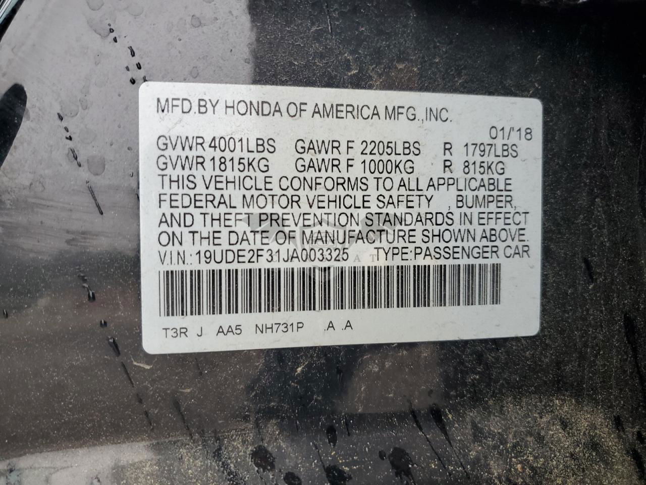 • VIN: 19UDE2F31JA003325