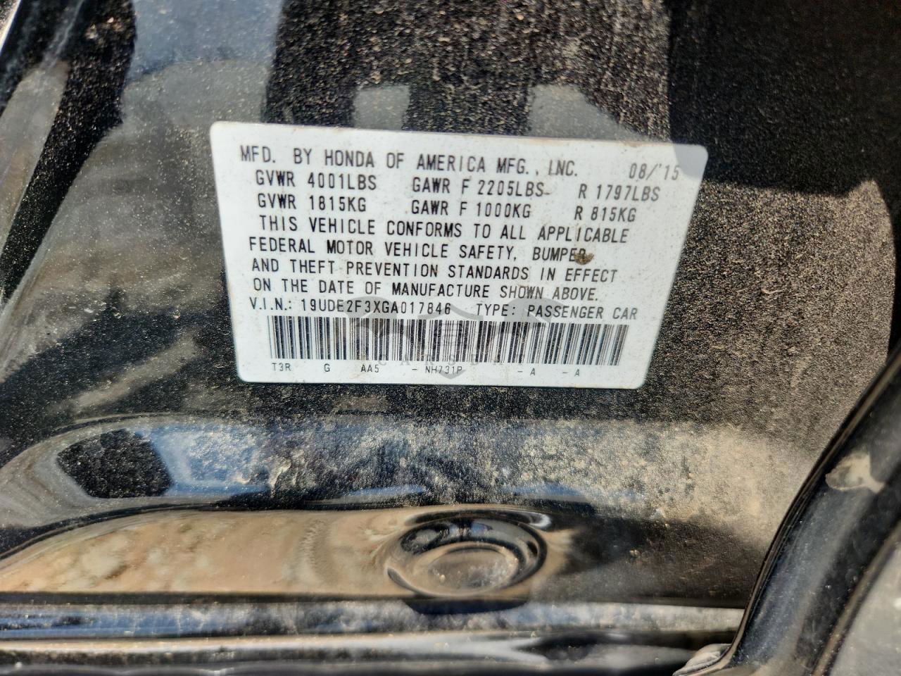 • VIN: 19UDE2F3XGA017846