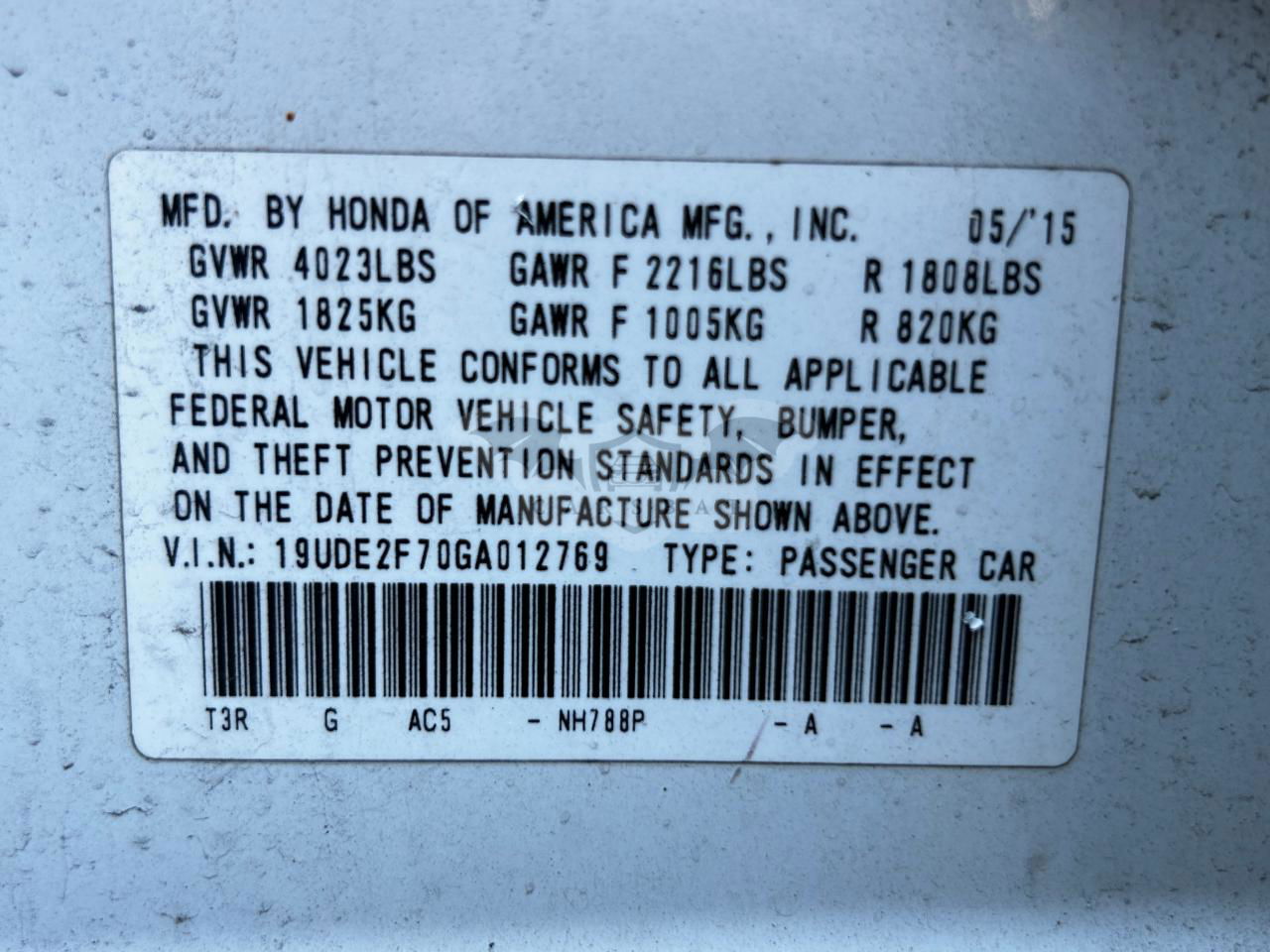• VIN: 19UDE2F70GA012769