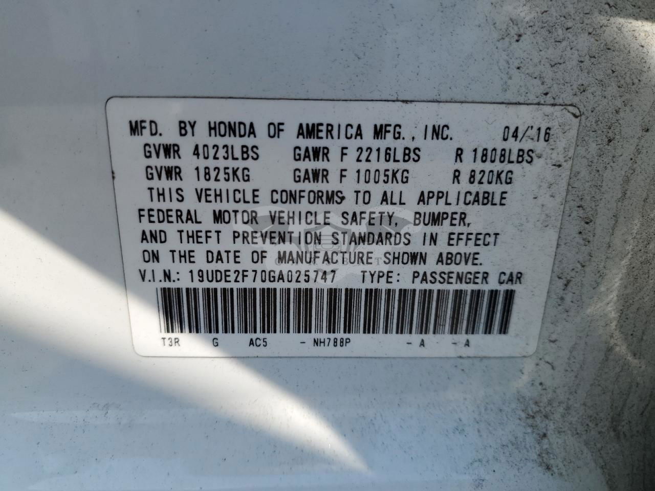 • VIN: 19UDE2F70GA025747