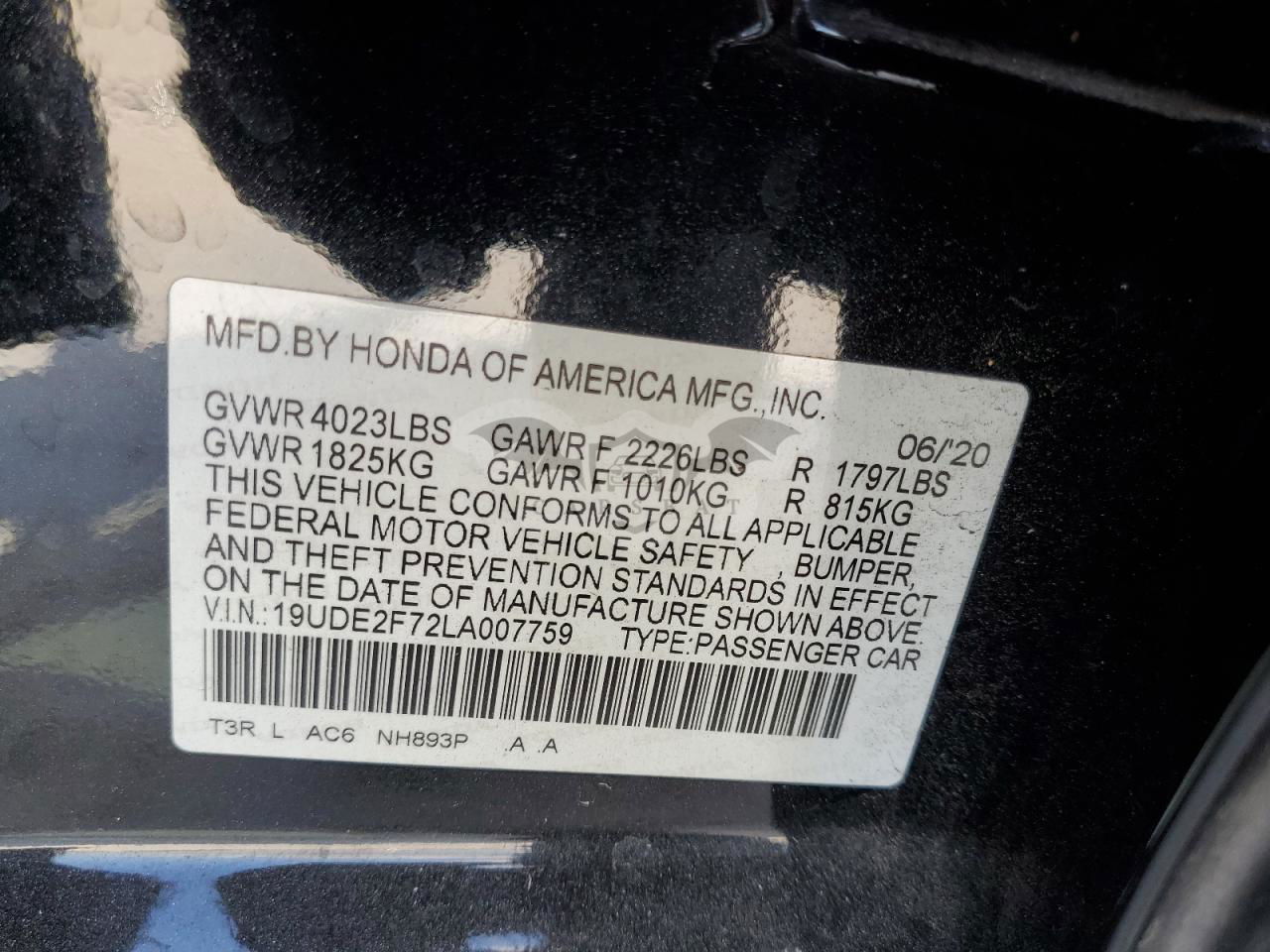 • VIN: 19UDE2F72LA007759