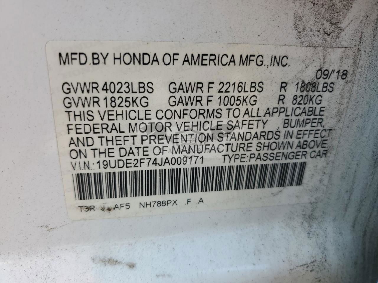 • VIN: 19UDE2F74JA009171
