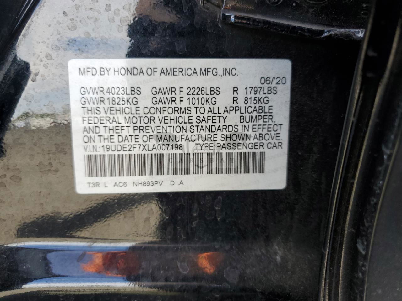 • VIN: 19UDE2F7XLA007198