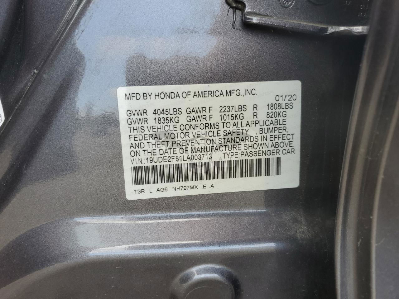 • VIN: 19UDE2F81LA003713
