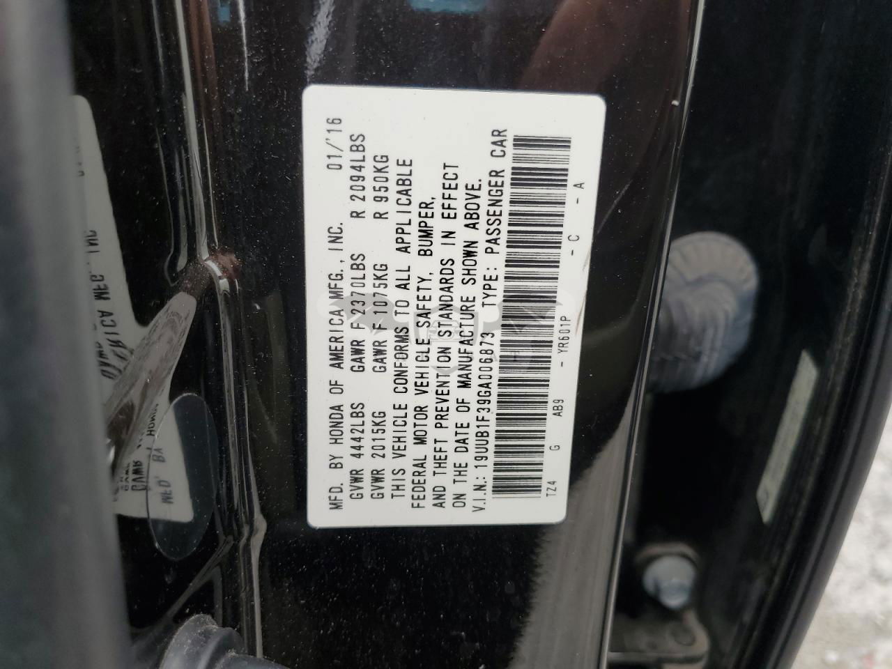 • VIN: 19UUB1F39GA006873
