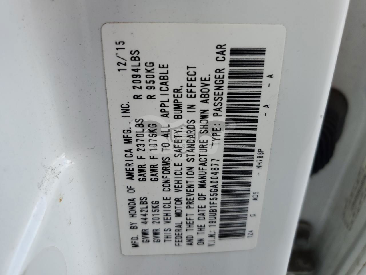 • VIN: 19UUB1F55GA004877