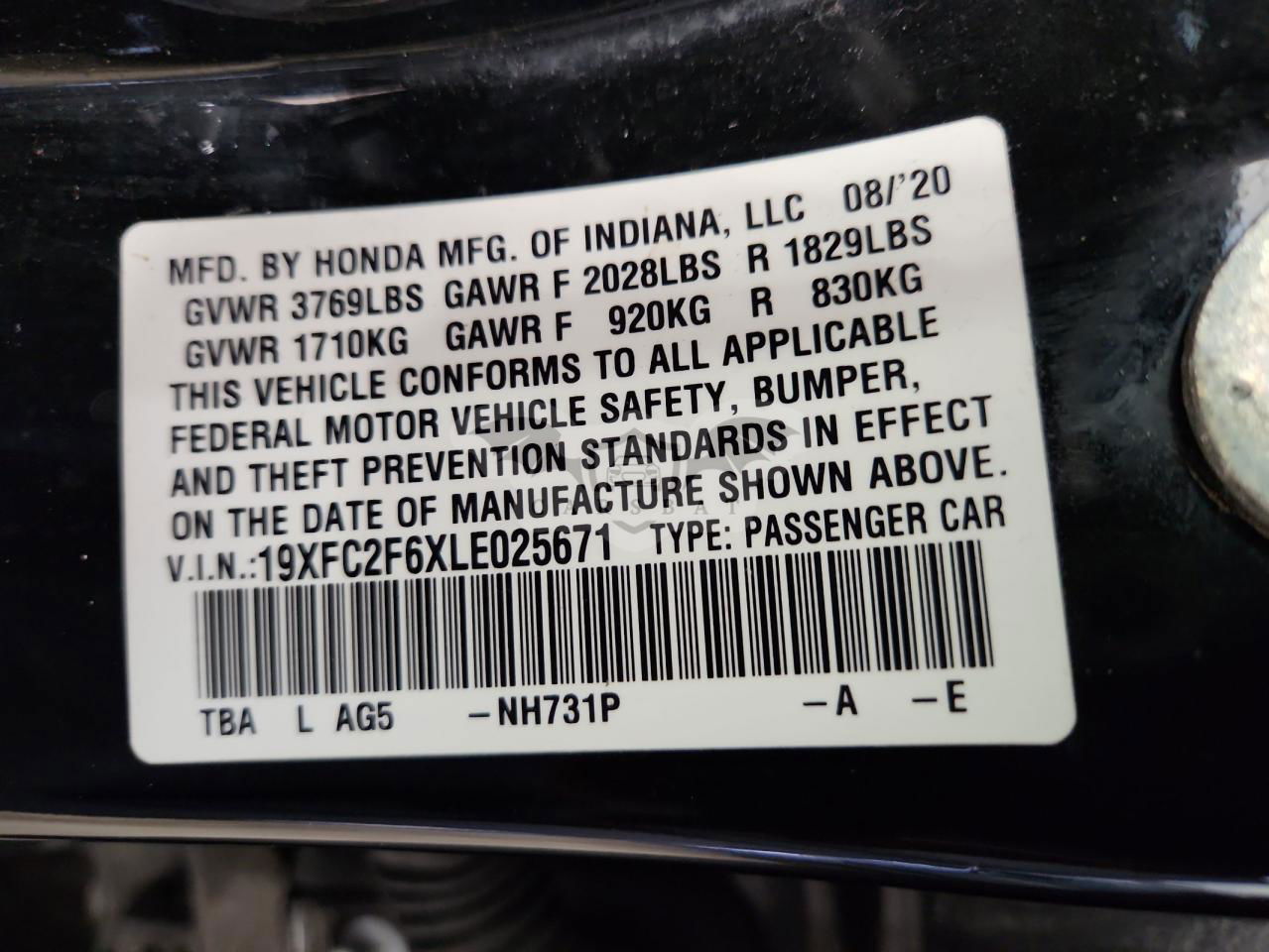 • VIN: 19XFC2F6XLE025671