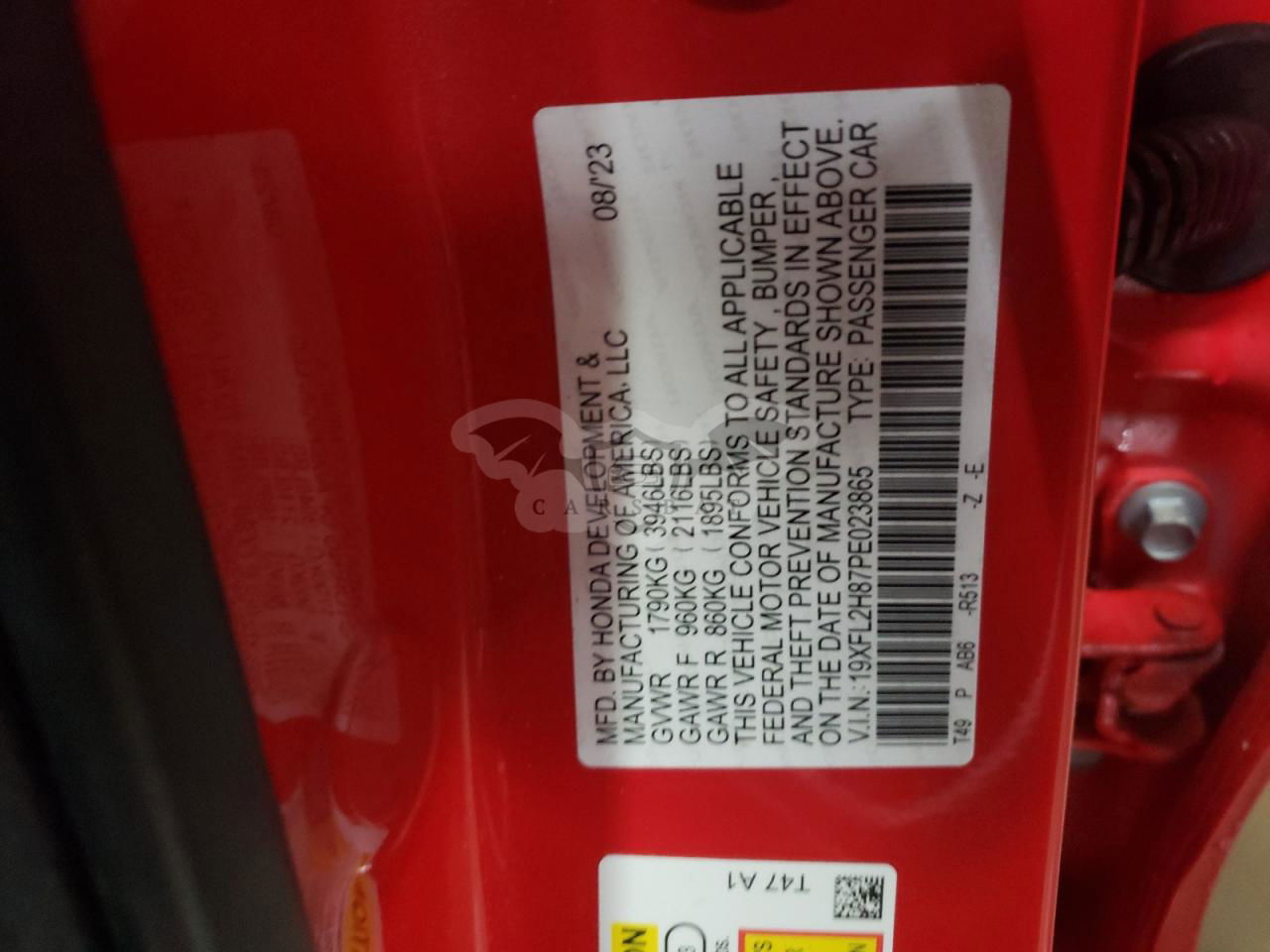 • VIN: 19XFL2H87PE023865
