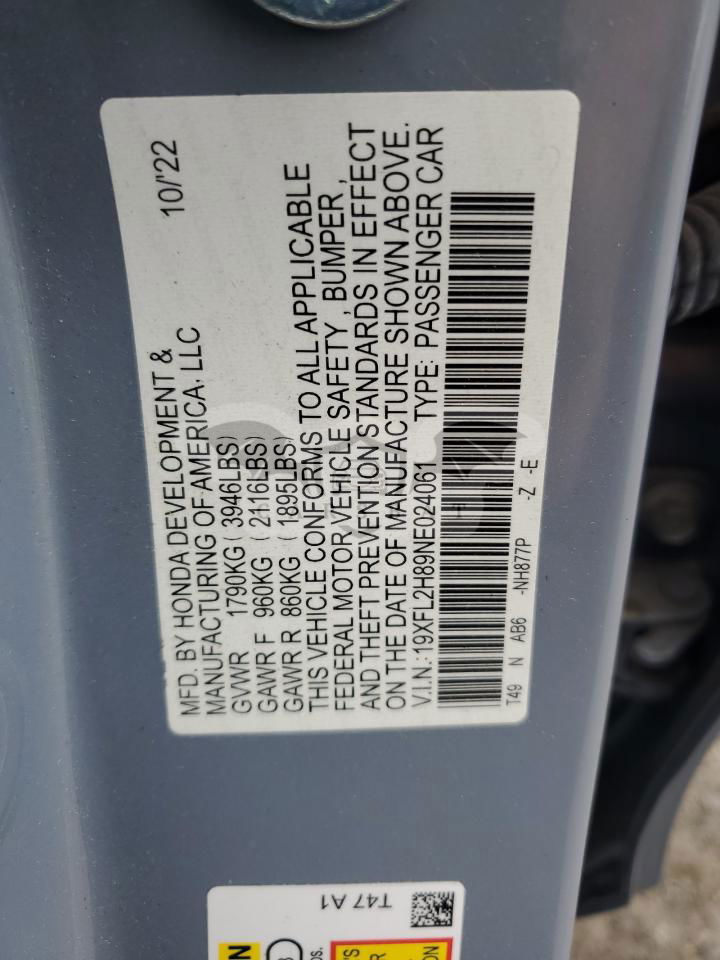 • VIN: 19XFL2H89NE024061