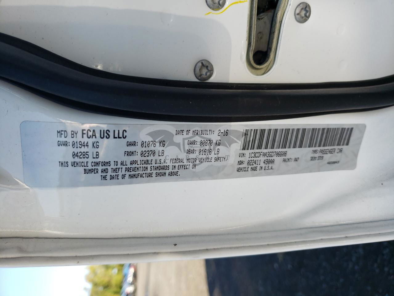 • VIN: 1C3CDFAA3GD706608