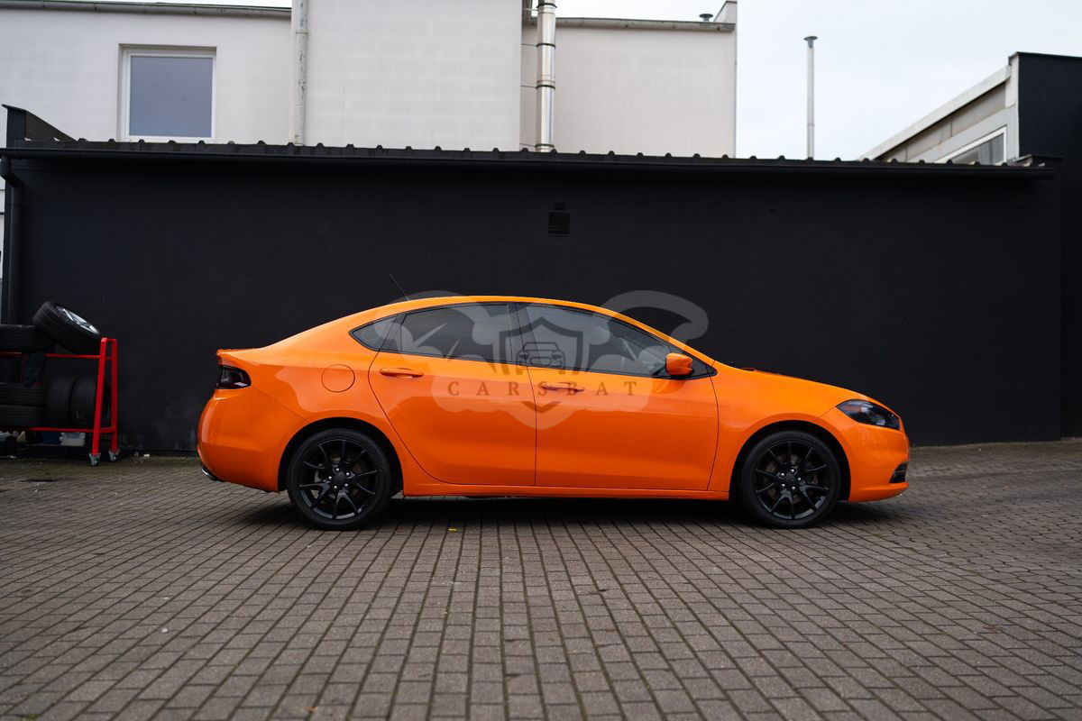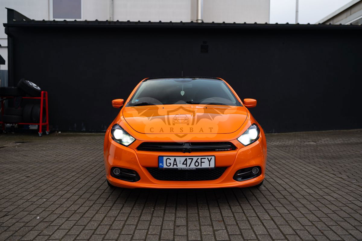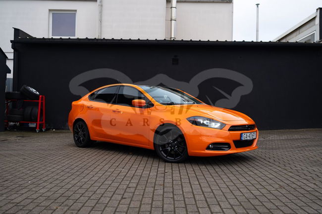 - [ ] Dodge Dart 2.0 benzyna, automat 7 biegowa skrzynia. Auto w moich rękach od 02.2016 roku przebieg oryginalny. Auto było sprowadzone z USA z małymi uszkodzeniami kosmetycznymi do lakierowania. Zdjęcia samochodu jak jeszcze stał w stanach przed transportem do wglądu. Auto było bez uszkodzeń mechanicznych. Spalanie miasto ~ 9l/100km spalanie trasa 7l/100 km. Klimatyzacja elektryczne szyby, tempomat, elektryczne lusterka, wielofunkcyjna kierownica, podgrzewana tylna szyba, lusterka i lusterko wsteczne z filtrem. Przyciemnione szyby, na dachu czarna folia w połysku, lampy przód oraz tył razem z blendą bagażnika zabezpieczone folia PPF lekko przyciemniająca. Dwa zestawy kół zima oryginalne koła 17 cali lakierowane na czarny połysk z oponami Dębica Frigo HP2 225/45. Koła lato z oponami Nokian 225/40 R18. Felgi zabezpieczone powłoka ceramiczną. Lakier pokryty powłoką hydrofobową Fireball. - [ ] Troche historii - [ ] Po przejęciu samochodu wymieniony olej w skrzyni biegów miał około 80 tys km, olej zmieniany pneumatycznie na Ravenol. Olej silnikowy zmieniany średnio co 10 tyś km, olej Ravenol ECS 0w20 dedykowany parametrami. W czasie użytkowania zmienne łożyska przód i tył. Przy 150 tyś km książkowo wymienione wszystkie poduszki silnika i skrzyni oryginalne ściągnę z USA. Lipiec 2023 przy przebiegu ~150 tys km wymieniony ponownie pneumatycznie olej w skrzyni poraź kolejny na Ravenol. W wakacje 2024 wymienione cewki zapłonowe z świecami komplet. Również w tym okresie wymienione klocki oraz zregenerowane zostały zaciski tył wcześniej nowe tarcze i też klocki . W 2023 roku zmieniałem również soczewki w lampach przednich na BiLed. W 2023 roku wymieniałem też jeden z króćców wraz z wężami. Auto jest po świeżej wymianie oleju oraz wymianie łączników stabilizatora przód oraz końcówki drążka kierowniczego, oraz zrobiona geometria kół. Samochód służył mi bardzo dobrze aktualnie bez wkładu finansowego wsiadamy o jeździmy. Dodatkowo do auta dokładam drugą blendę bagażnika LED. Dywaniki gumowe plus materiałowe. Auto garażowane i jeżdżące głównie po mieście.