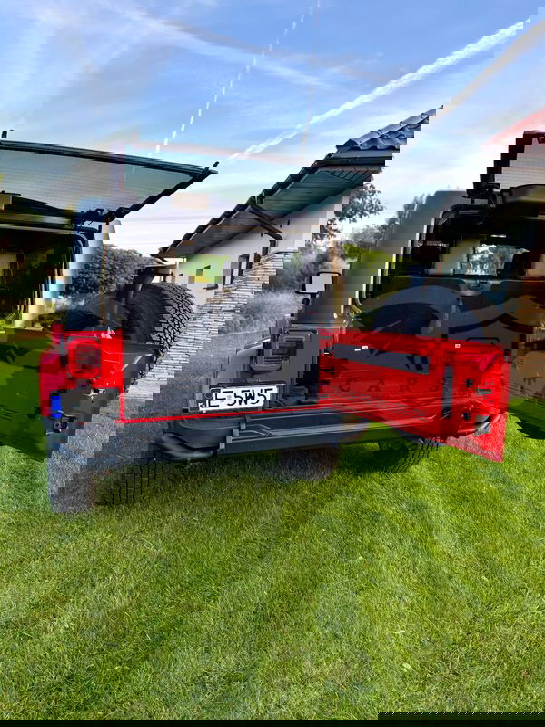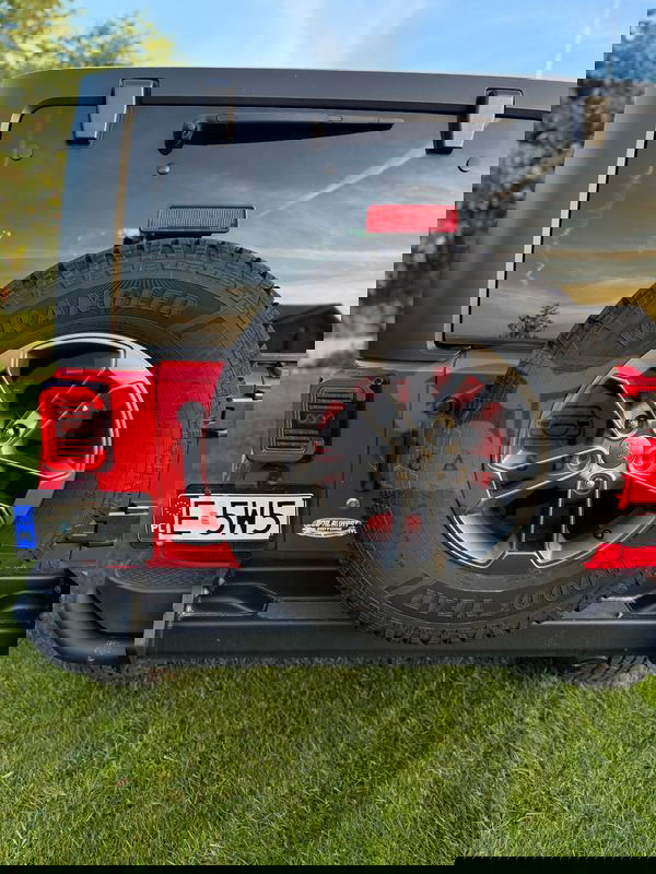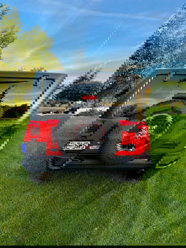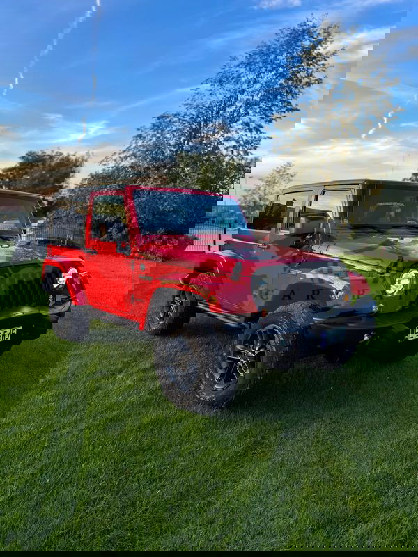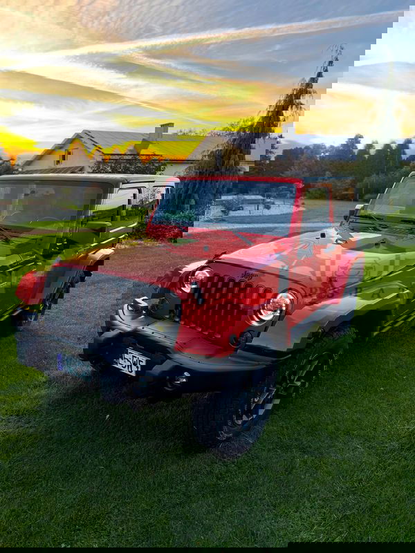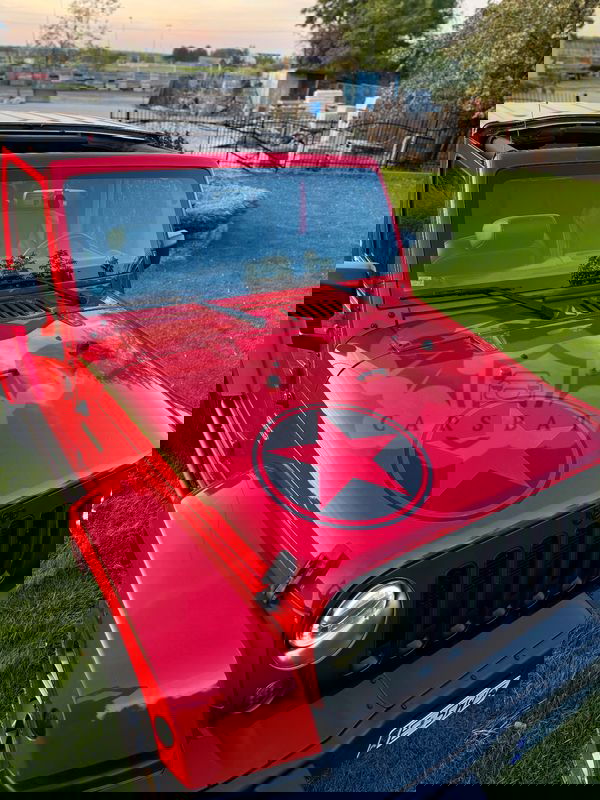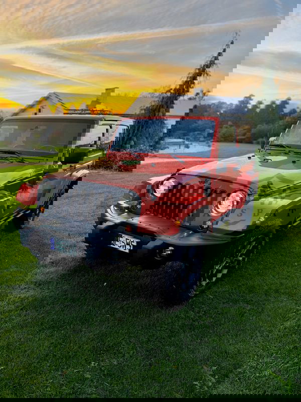 Czerwony Jeep Wrangler IV 3.6 Sahara 2018 roku | Benzyna