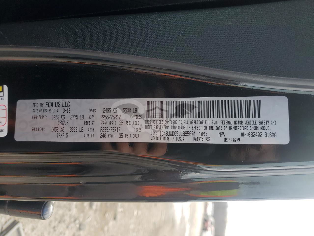 • VIN: 1C4BJWDG5JL895601