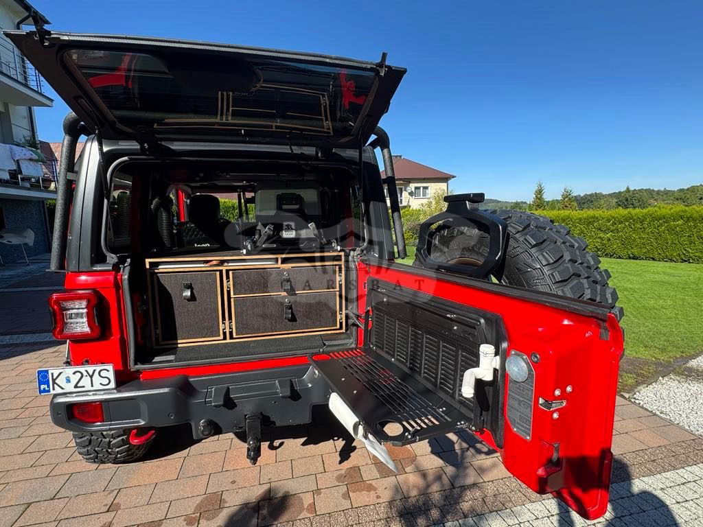 Czerwony Jeep Wrangler IV GME 2.0 Turbo Rubicon 2019 roku | Benzyna