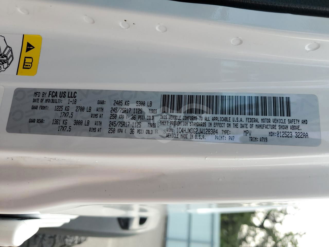 • VIN: 1C4HJXDG2JW128304