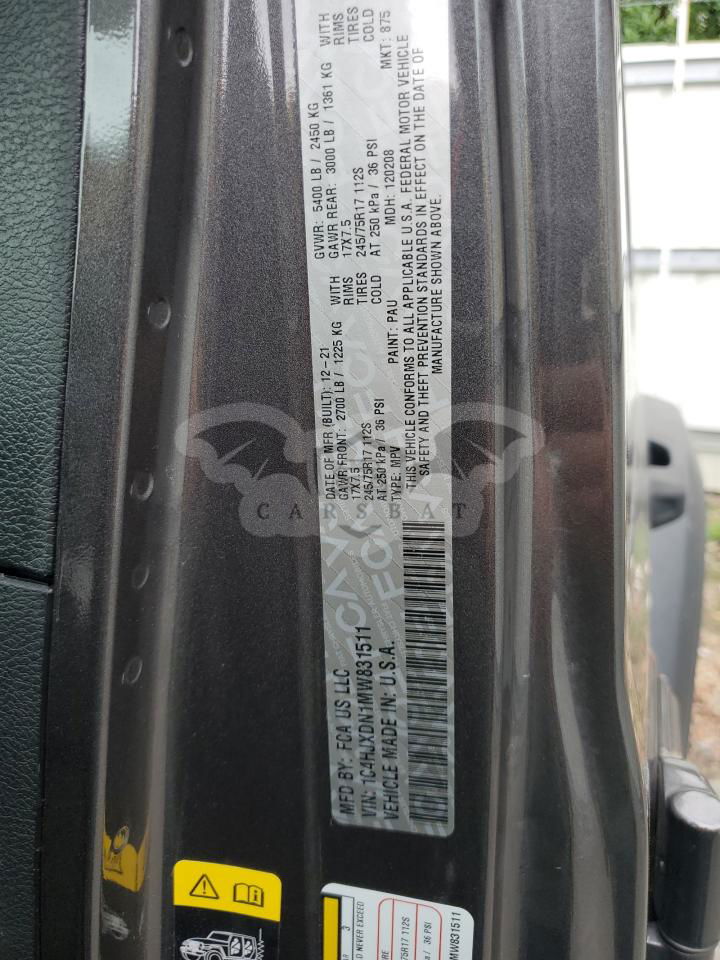 • VIN: 1C4HJXDN1MW831511