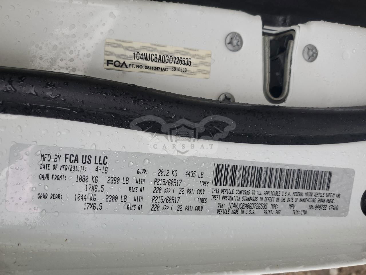 • VIN: 1C4NJCBA0GD726535
