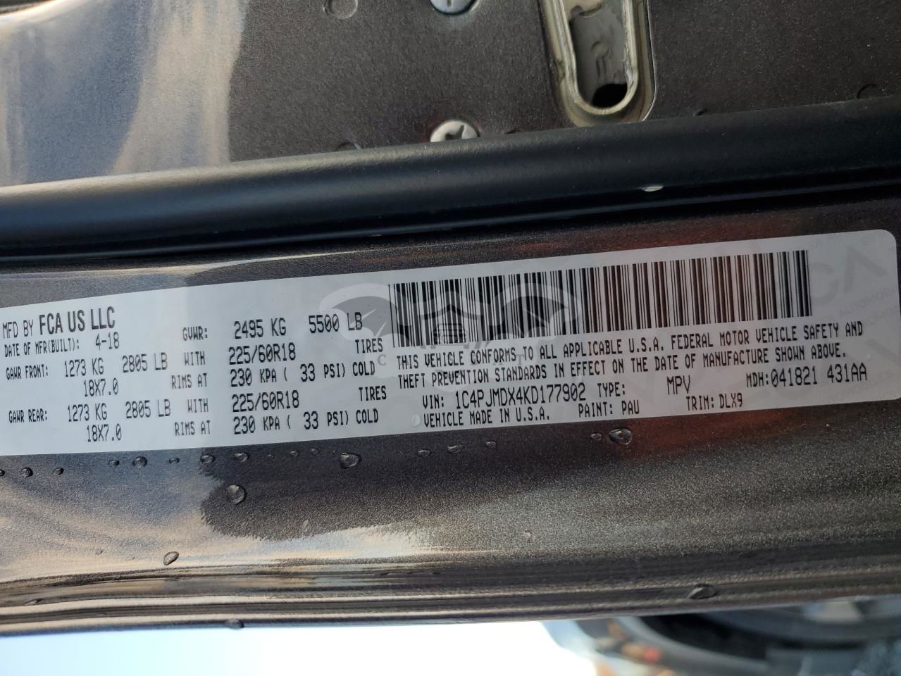 • VIN: 1C4PJMDX4KD177902