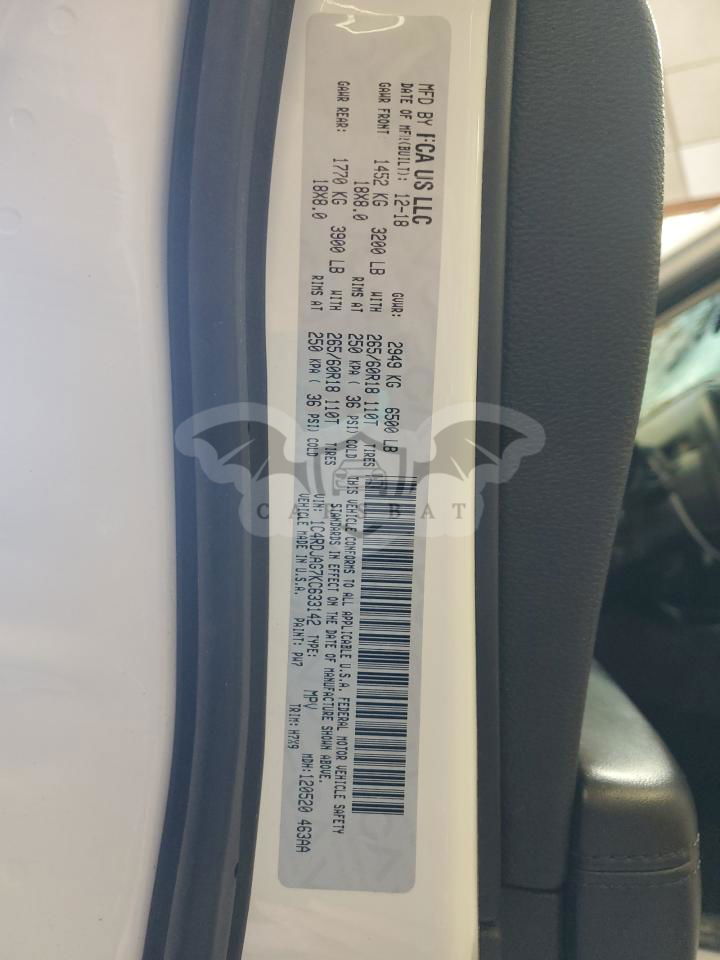 • VIN: 1C4RDJAG7KC633142