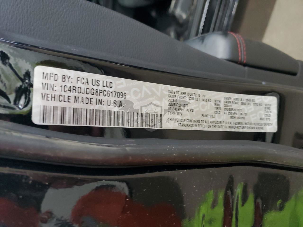 • VIN: 1C4RDJDG8PC617096