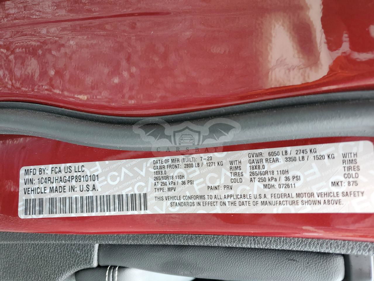 • VIN: 1C4RJHAG4P8910101