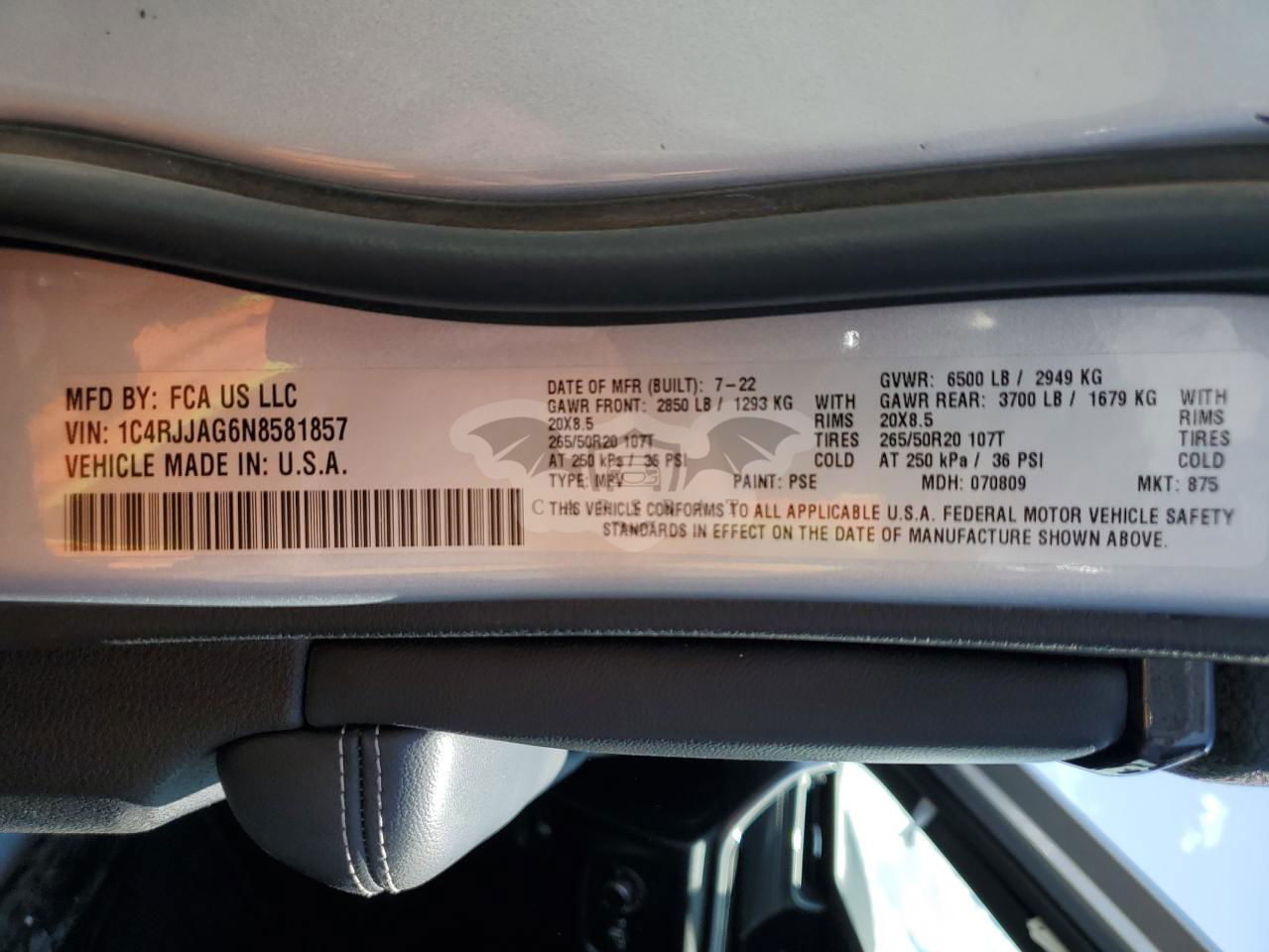 • VIN: 1C4RJJAG6N8581857
