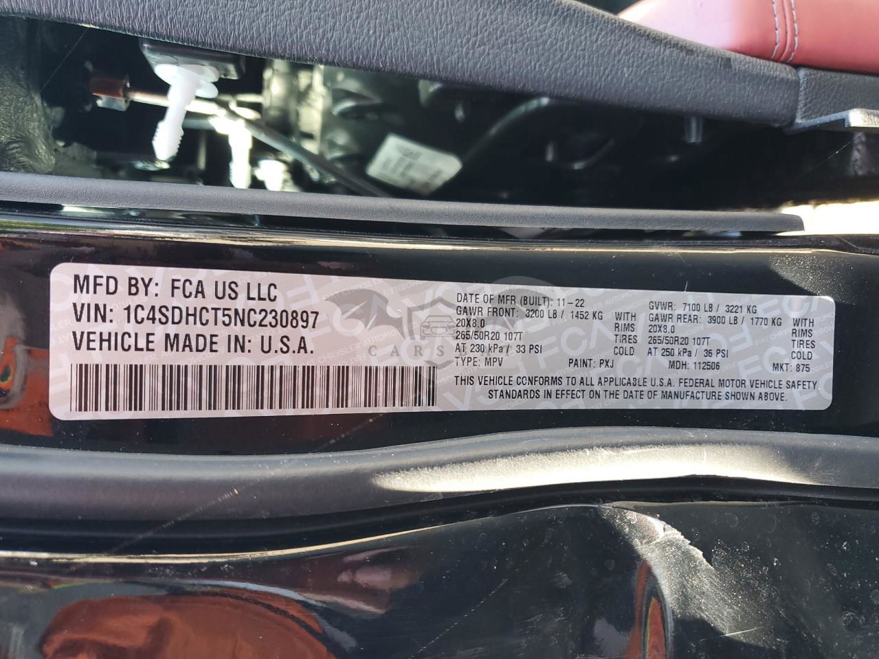 • VIN: 1C4SDHCT5NC230897
