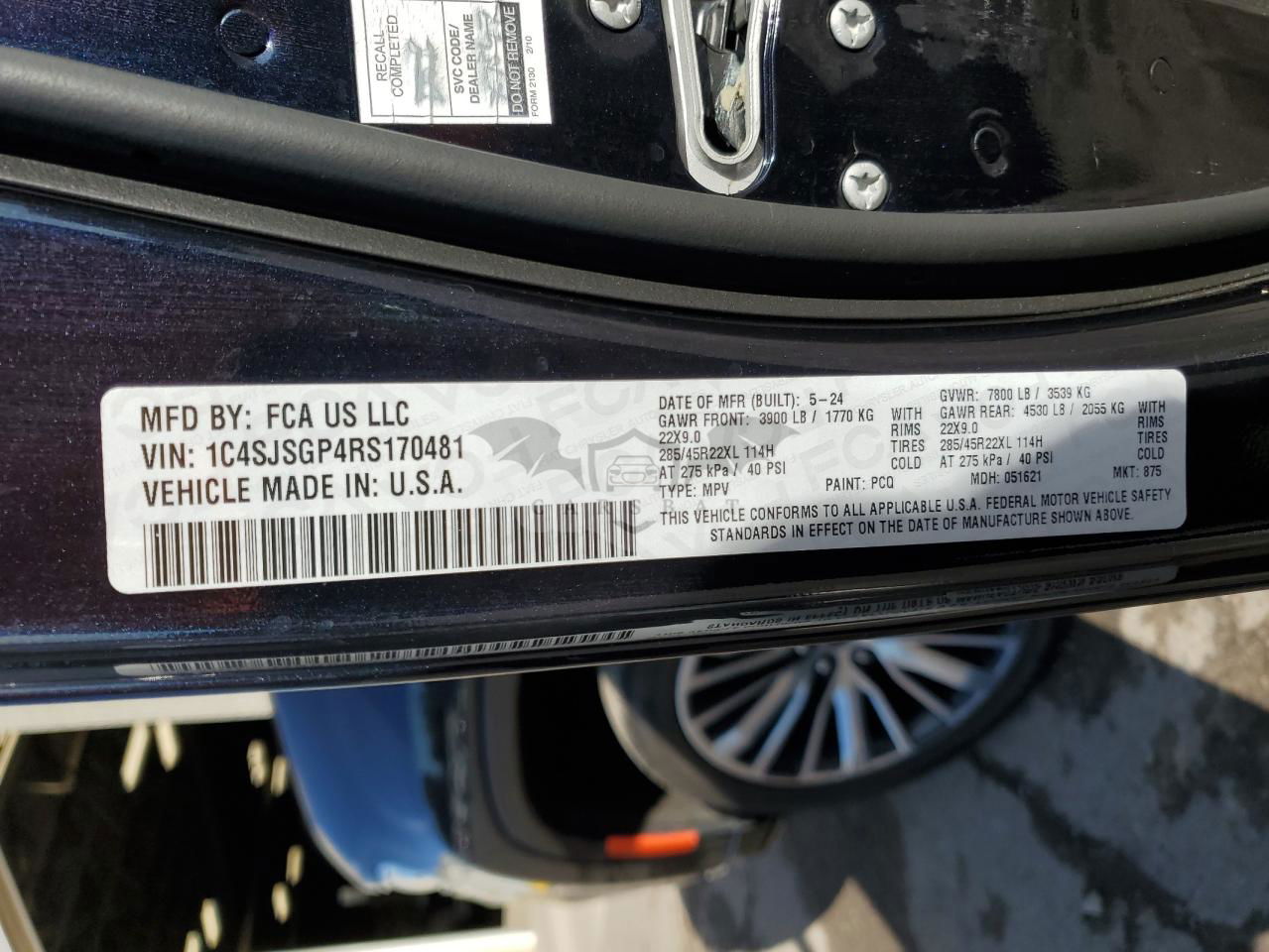 • VIN: 1C4SJSGP4RS170481