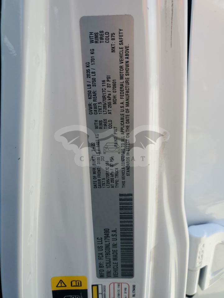 • VIN: 1C6JJTBG0NL179490
