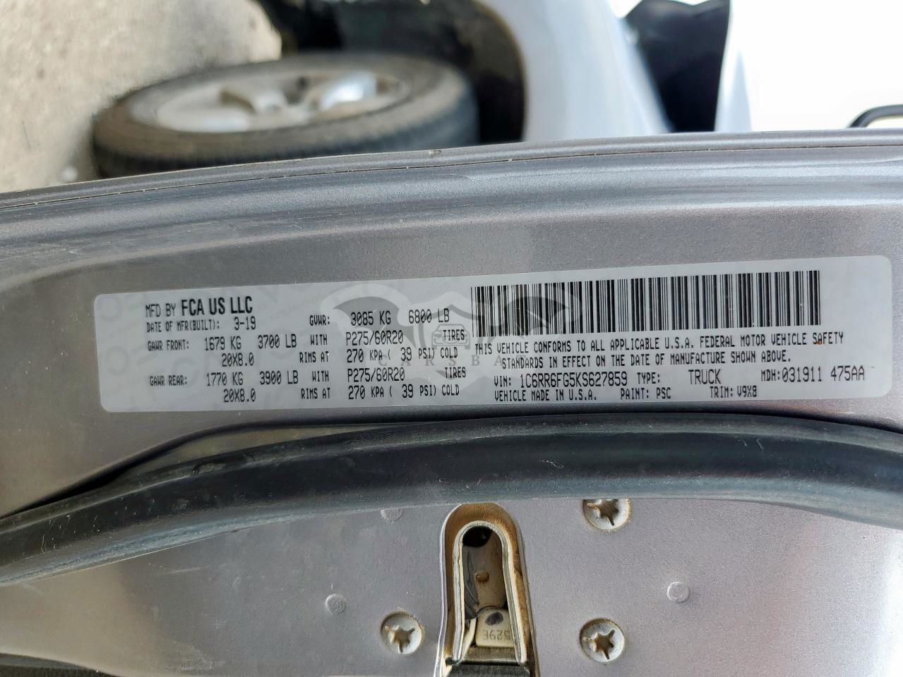 • VIN: 1C6RR6FG5KS627859