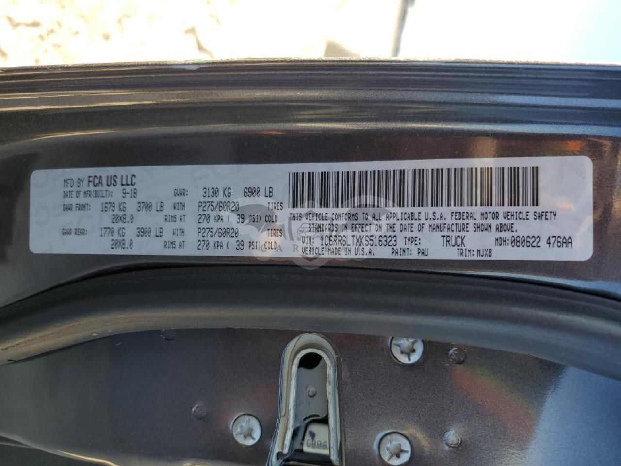 • VIN: 1C6RR6LTXKS516323