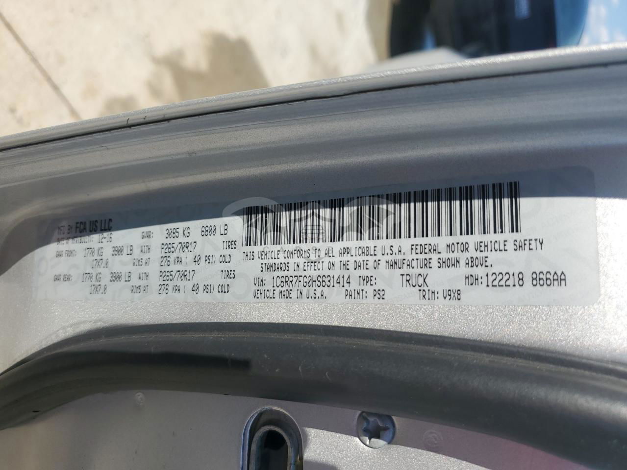 • VIN: 1C6RR7FG0HS631414