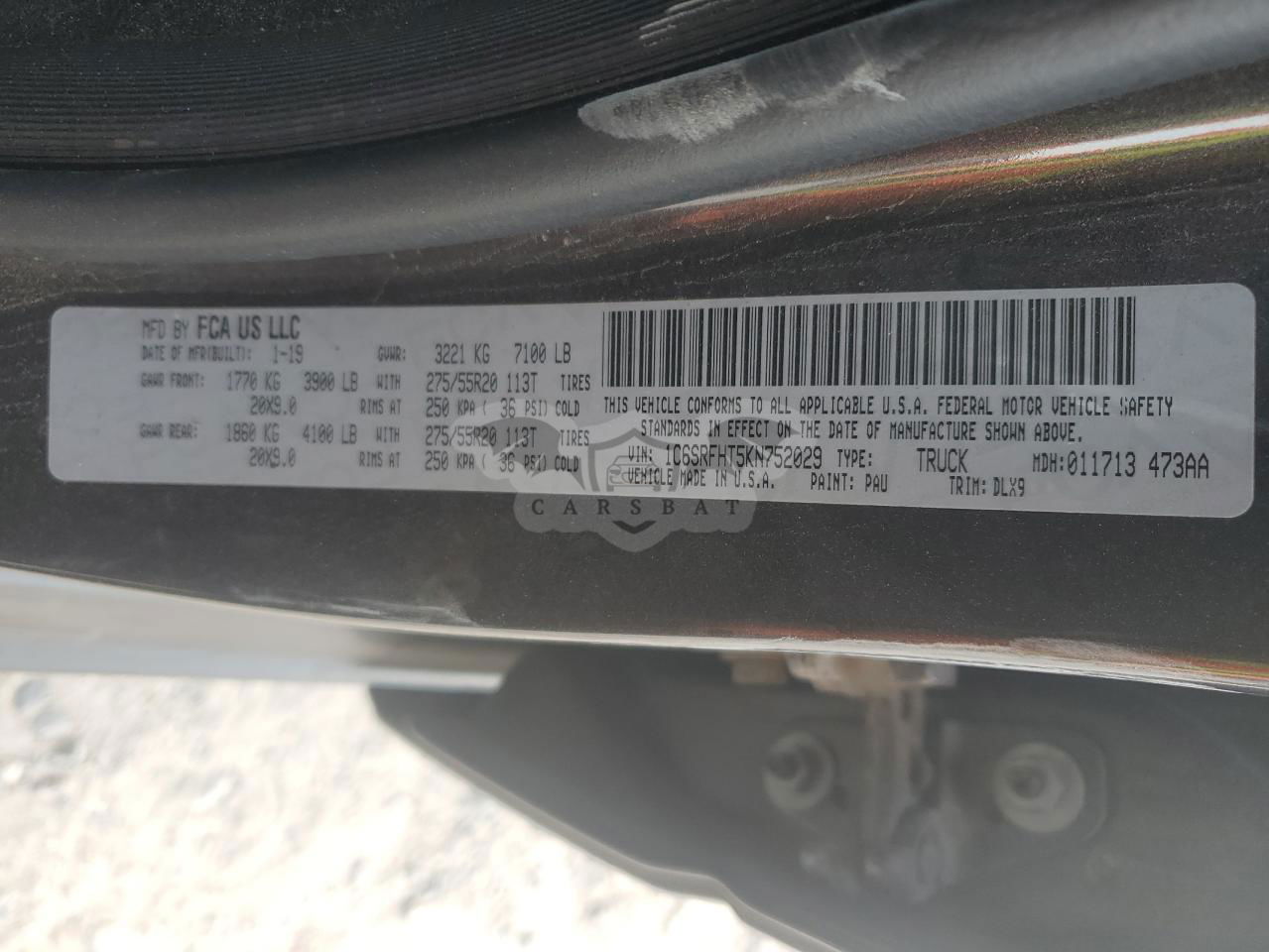 • VIN: 1C6SRFHT5KN752029
