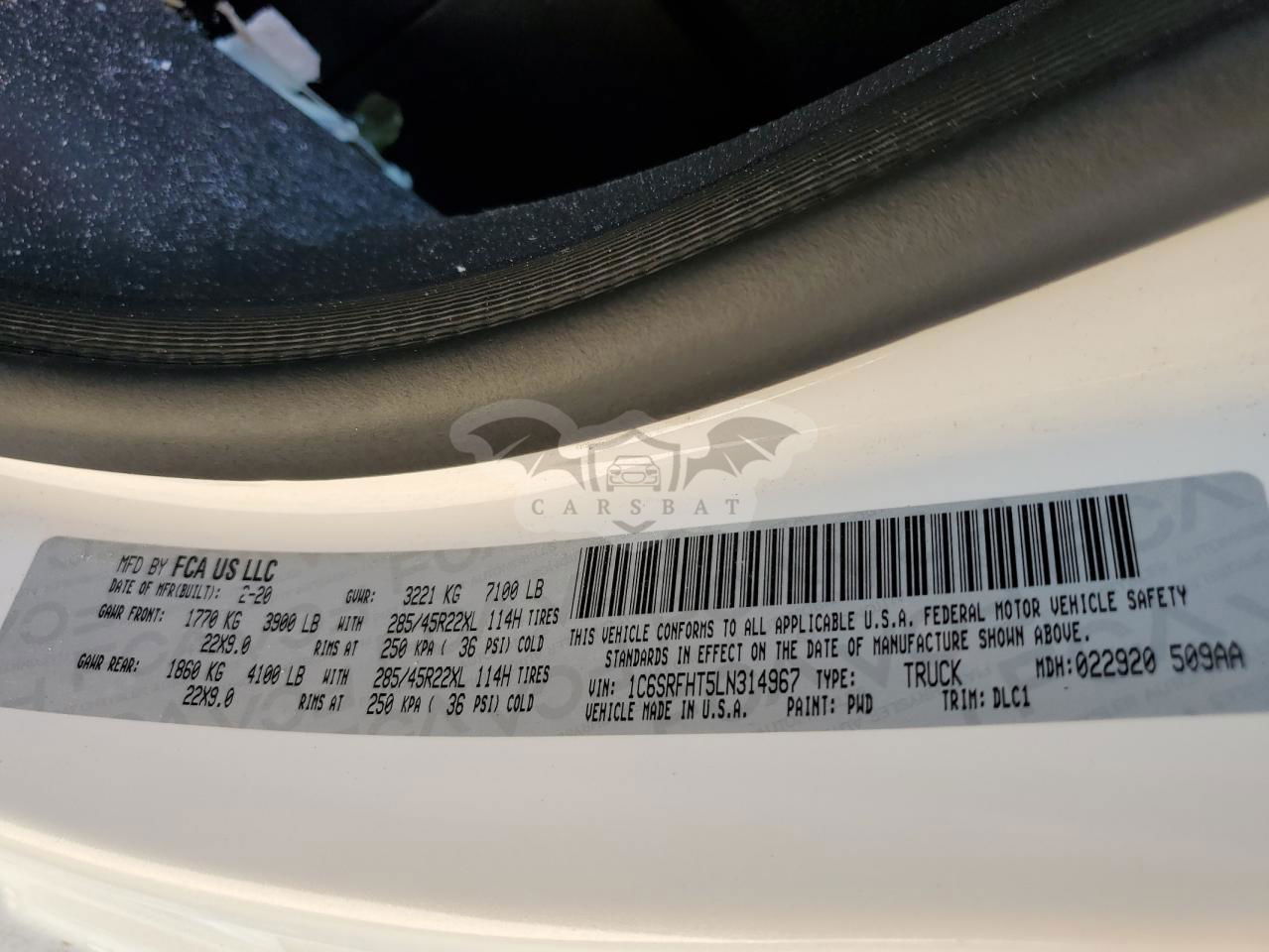 • VIN: 1C6SRFHT5LN314967