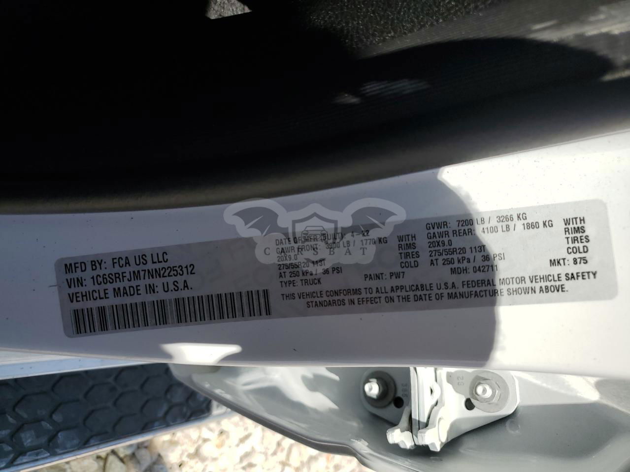 • VIN: 1C6SRFJM7NN225312