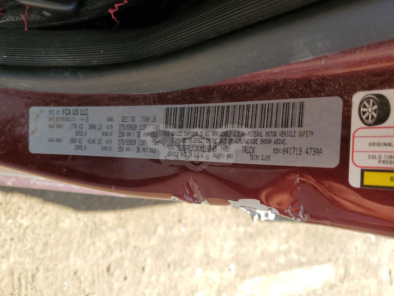 • VIN: 1C6SRFJT3KN516845