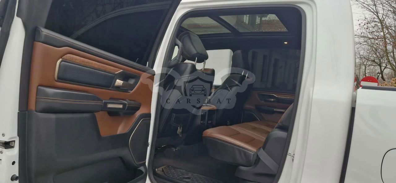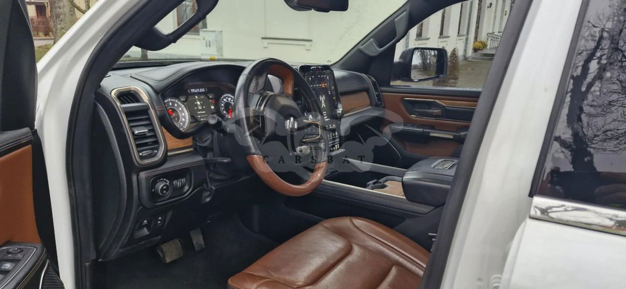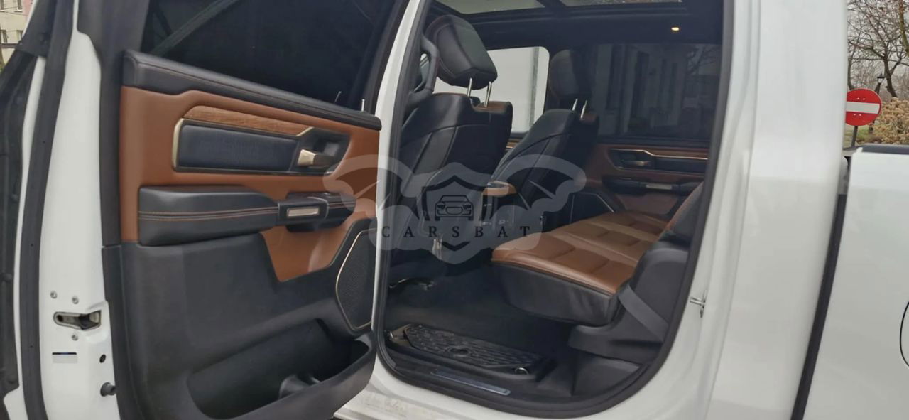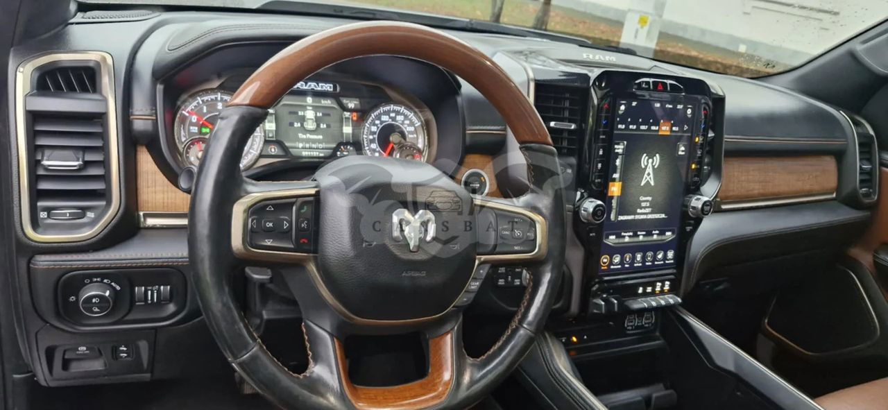 Skórzana tapicerka beżowa, kokpit wykończony skórą klasy , elementy drewnopodobne ze stylizacją Laramie Longhorn