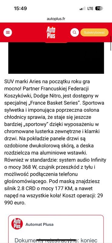 Bordo Dodge Nitro 2.8 CRD DPF Automatik SXT 2009 roku | Diesel