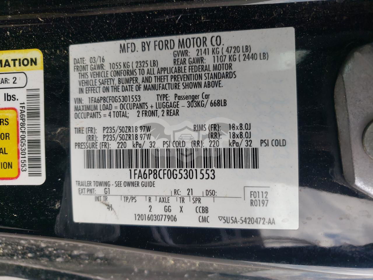• VIN: 1FA6P8CF0G5301553