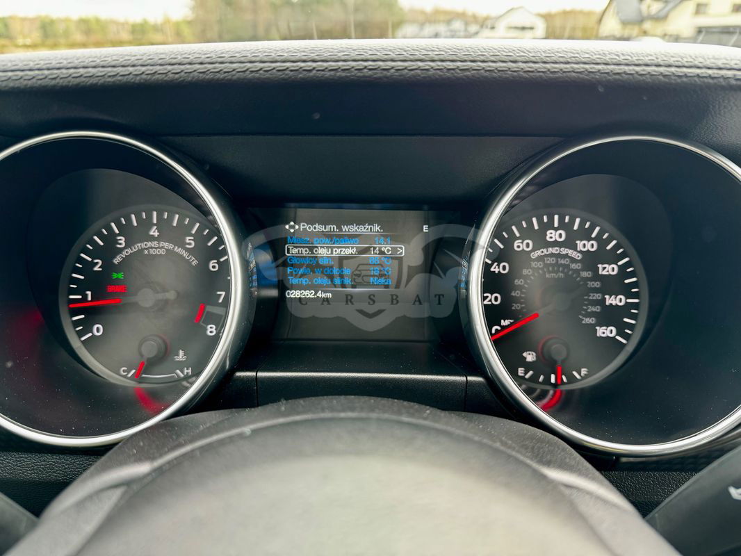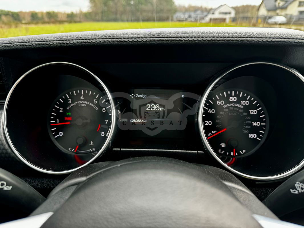 Ford Mustang 5.0 V8 460KM (BENZYNA) w najbogatszej wersji GT USA. Auto w wyposażeniu posiada wszystko co jest możliwe w konfiguracji pojazdu. Przepiękny kolor perłowy Granat, nie da się tego auta nie zauważyć na ulicy, ani przejść obok niego obojętnie. Pojazd ze względu na znikomy przebieg jest jak nowe, żadnych obić rys przetarć itp. Auto w 100% przygotowane do jazdy. W aucie została nałożona powłoka ceramiczna, przy czym również wykonana pełna korekta lakieru, auto jak lustro. Zarejestrowany, Ubezpieczony, pierwszy właściciel w kraju. Osoba prywatna. Pojazd wyposażony w: - akcesoryjny wydech, - nowe opony, - systemy wyścigowe, - nagłośnienie B&O, - tryby torowe, - czarne 19" felgi, - asystent pasa ruchu, - aktywny tempomat - system autonomicznej jazdy ( auto jedzie samoczynnie pomiędzy liniami, utrzymując ustawioną odległość od poprzedzającego go samochodu, proszę nie mylić z asystentem trzymania pasa ruchu ) - automatyczne światła do jazdy dziennej, mijania i drogowe , - czujnik deszczu, - monitorowanie martwego pola, - szyberdach, - podgrzewane, - elektryczne fotele, - nagłośnienie SONY Play , - przednie reflektory Full Led , - układ ułatwiający ruszanie na wzniesieniu (HLA), - system nawigacji GPS ( aktualne mapy całej Europy w tym Polski ), - klimatyzacja automatyczna dwustrefowa, - AFU - system wspomagania hamowania, - CBC - system kontroli hamowania na zakrętach, - przycisk rozrusznika START-STOP, - system bezkluczykowy KEY-FREE, - elektryczna blokada drzwi, - felgi aluminiowe - przednie światła przeciwmgielne LED - system głośnomówiący do telefonu z łączem bluetooth, - odtwarzacz CD/MP3/USB/BLUETOOTH, - elektryczne podnoszenie szyb - przód, - zagłówki przednie i tylne z regulacją wysokości, - zamek centralny z pilotem, - uchwyty ISOFIX do mocowania fotelika dziecięcego - tył, - tylne oparcie składane, dzielone, - system stabilizacji toru jazdu (ESP) + system kontroli trakcji (ASR), - wspomaganie układu kierowniczego - progresywne, - schowek klimatyzowany, - REF - system rozdziału sił hamowania, - FORD MyKey - Ochrona rodzicielska ( możliwość programowania kluczyka ) - lusterko wsteczne fotochromatyczne, - lusterka boczne regulowane elektrycznie, ogrzewane, fotochromatyczne, BLISY, - czujnik martwego pola, - kontrolki zapięcia pasów bezp. dla wszystkich miejsc z funkcją ostrzegania o odpięciu pasów z przodu, - komputer pokładowy, - kolumna kierownicy z regulacją w dwóch płaszczyznach - elektryczna, - kierownica 3-ramienna, skórzana, wielofunkcyjna (z przyciskami sterowania system audio i tempomatem), - czujniki ciśnienia w oponach, - ekran dotykowy TFT , wyświetlanie wielofunkcyjne SYNC 3, i wiele innych. Auto jest zarejestrowane i ubezpieczone w kraju. Auto sprzedawane jest na Fakturę VAT marża - kupujący zwolniony z opłaty skarbowej 2%. Zapraszam do oględzin, jazdy próbnej. tel.