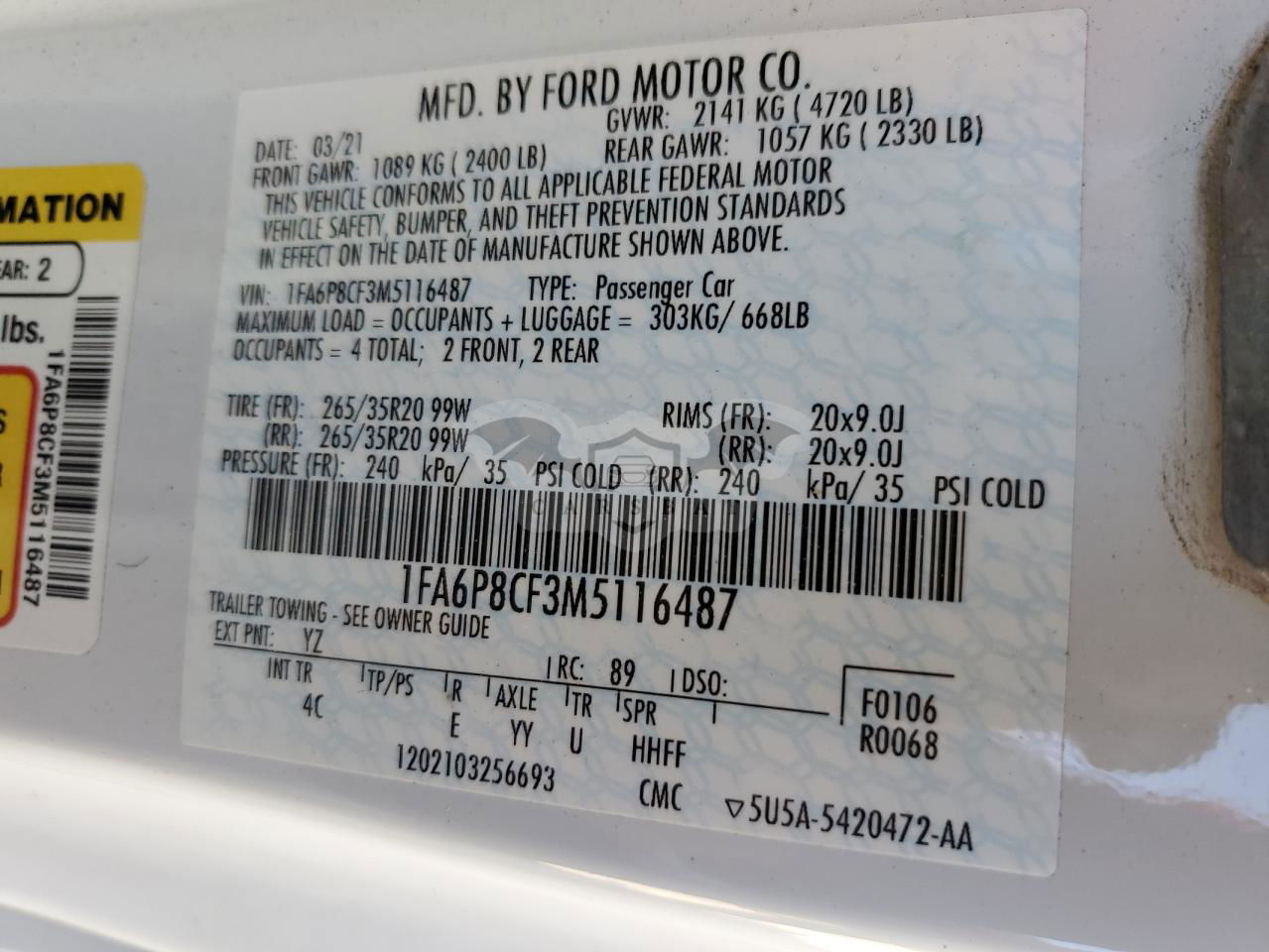 • VIN: 1FA6P8CF3M5116487