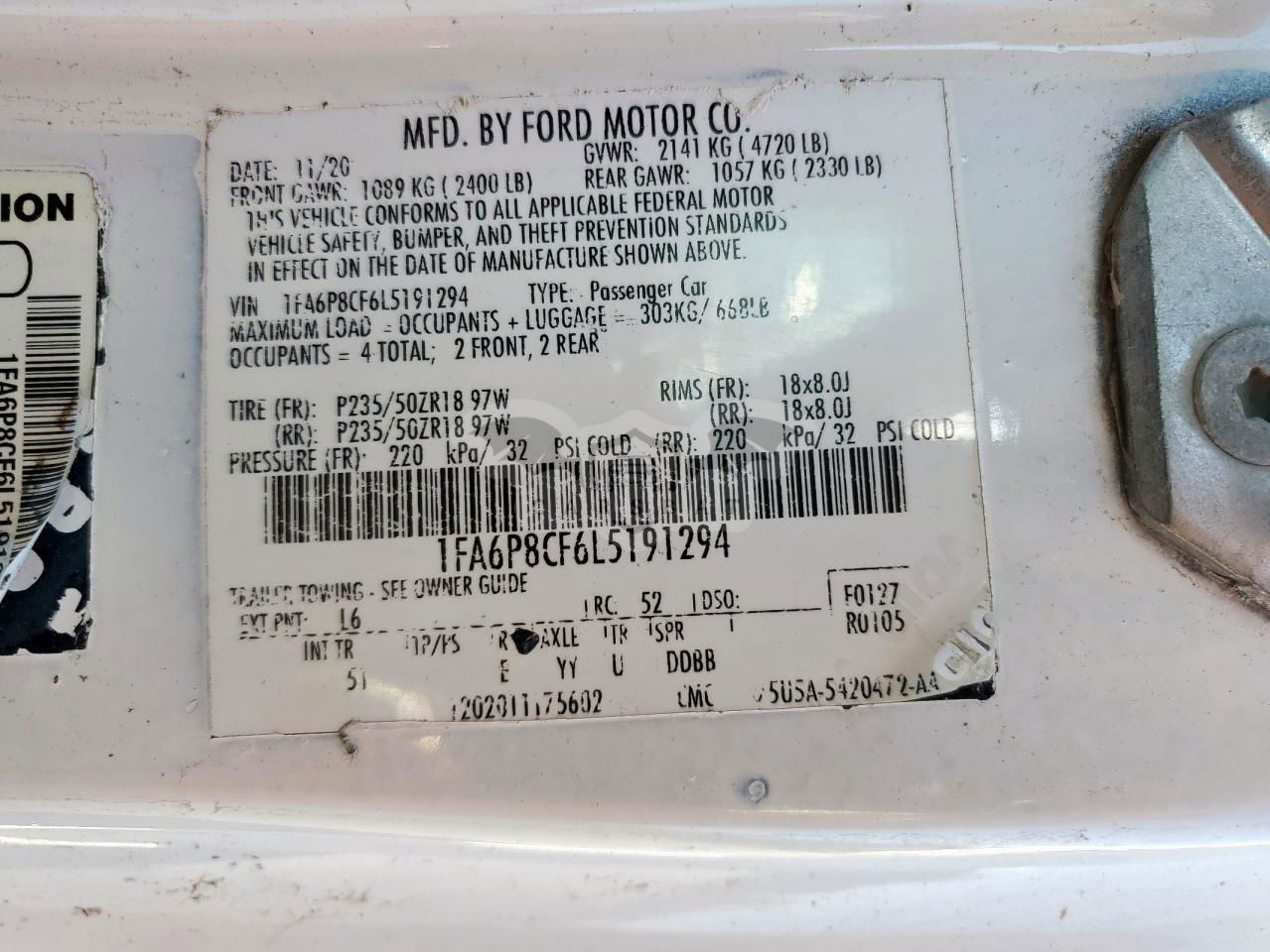 • VIN: 1FA6P8CF6L5191294
