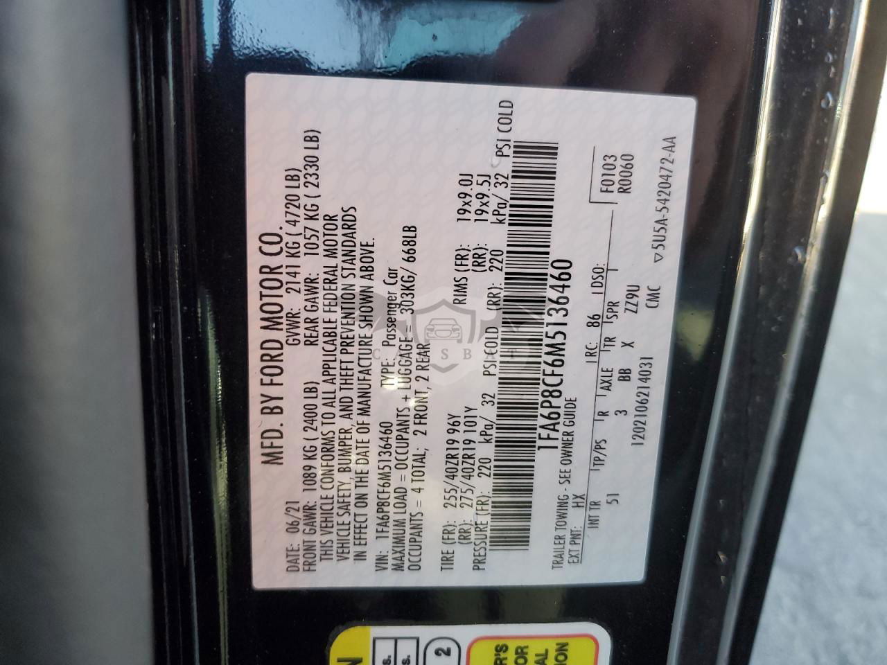 • VIN: 1FA6P8CF6M5136460