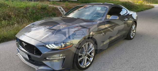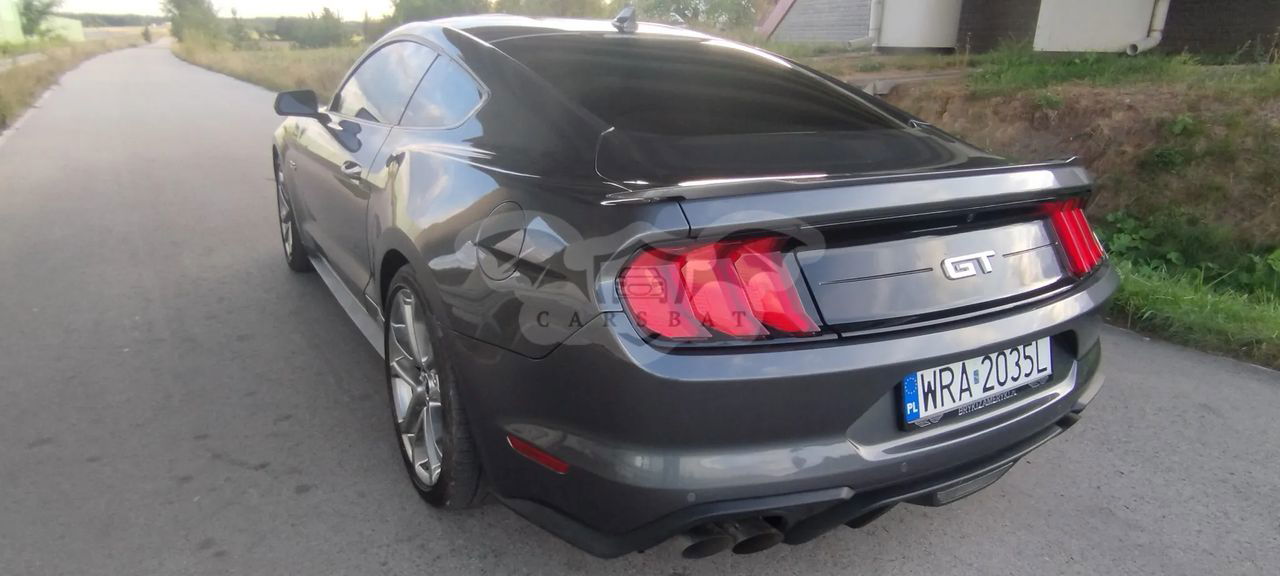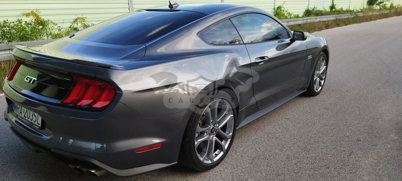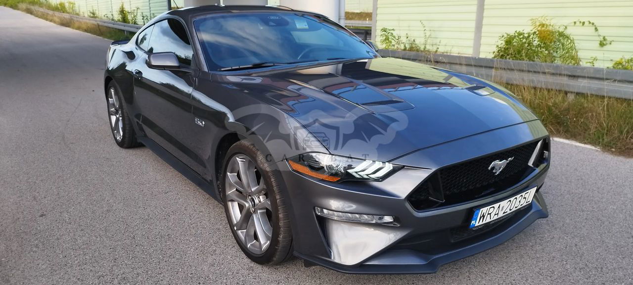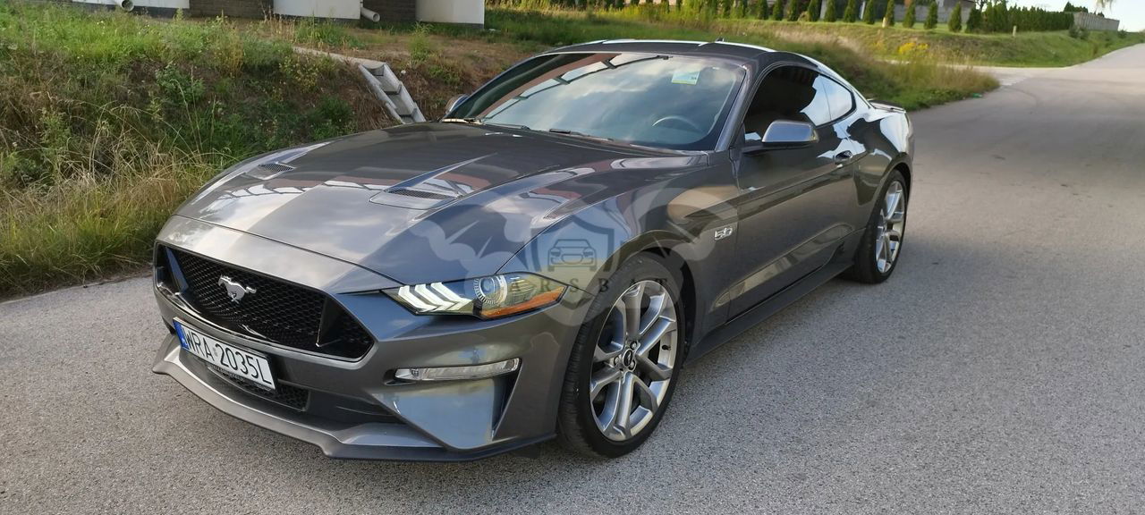 Szary Ford Mustang 5.0 V8 GT 2023 roku | Benzyna