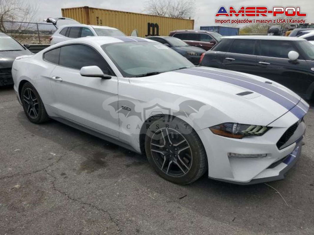 Biały Ford Mustang 2019 roku | Benzyna