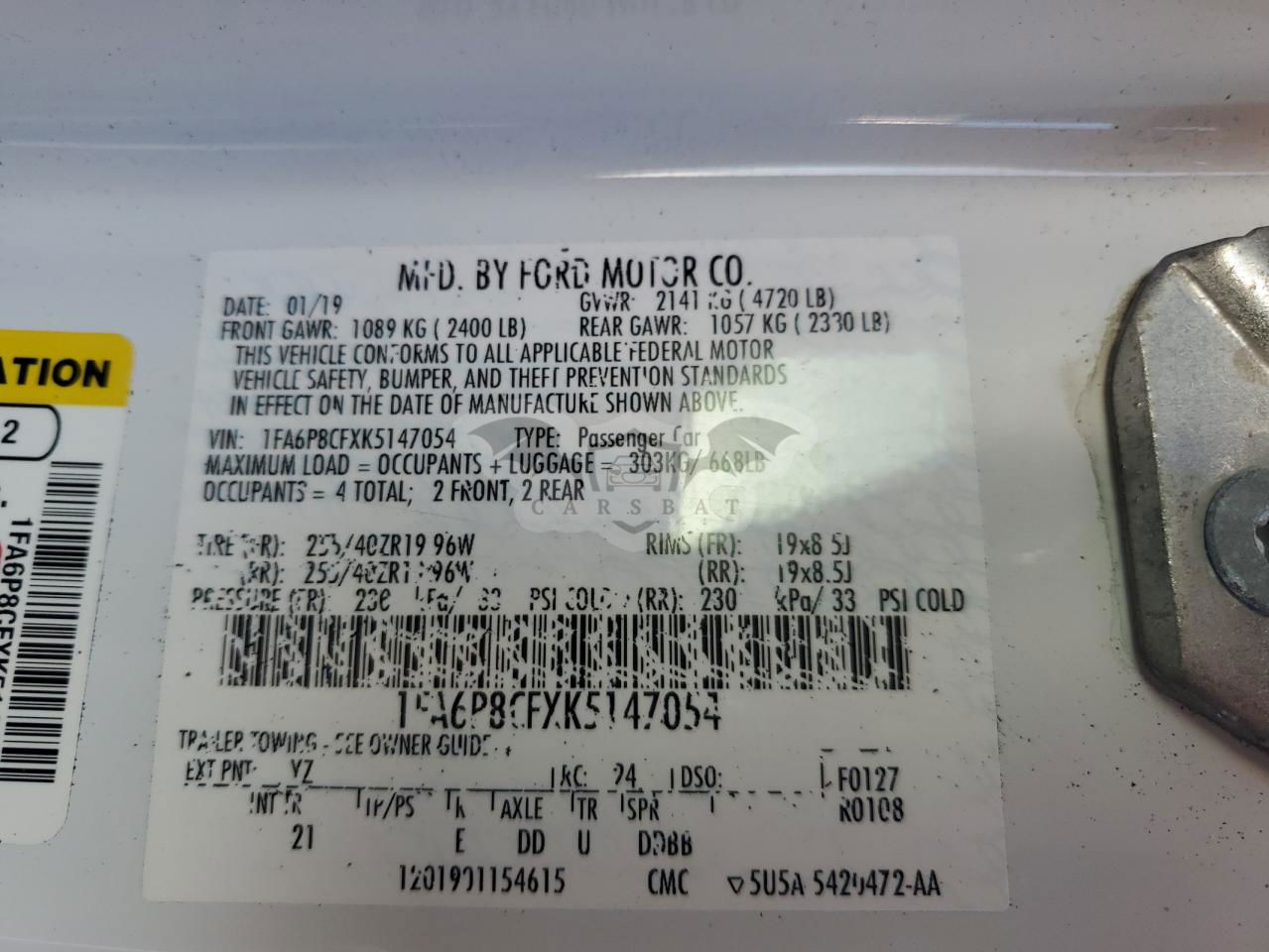 • VIN: 1FA6P8CFXK5147054