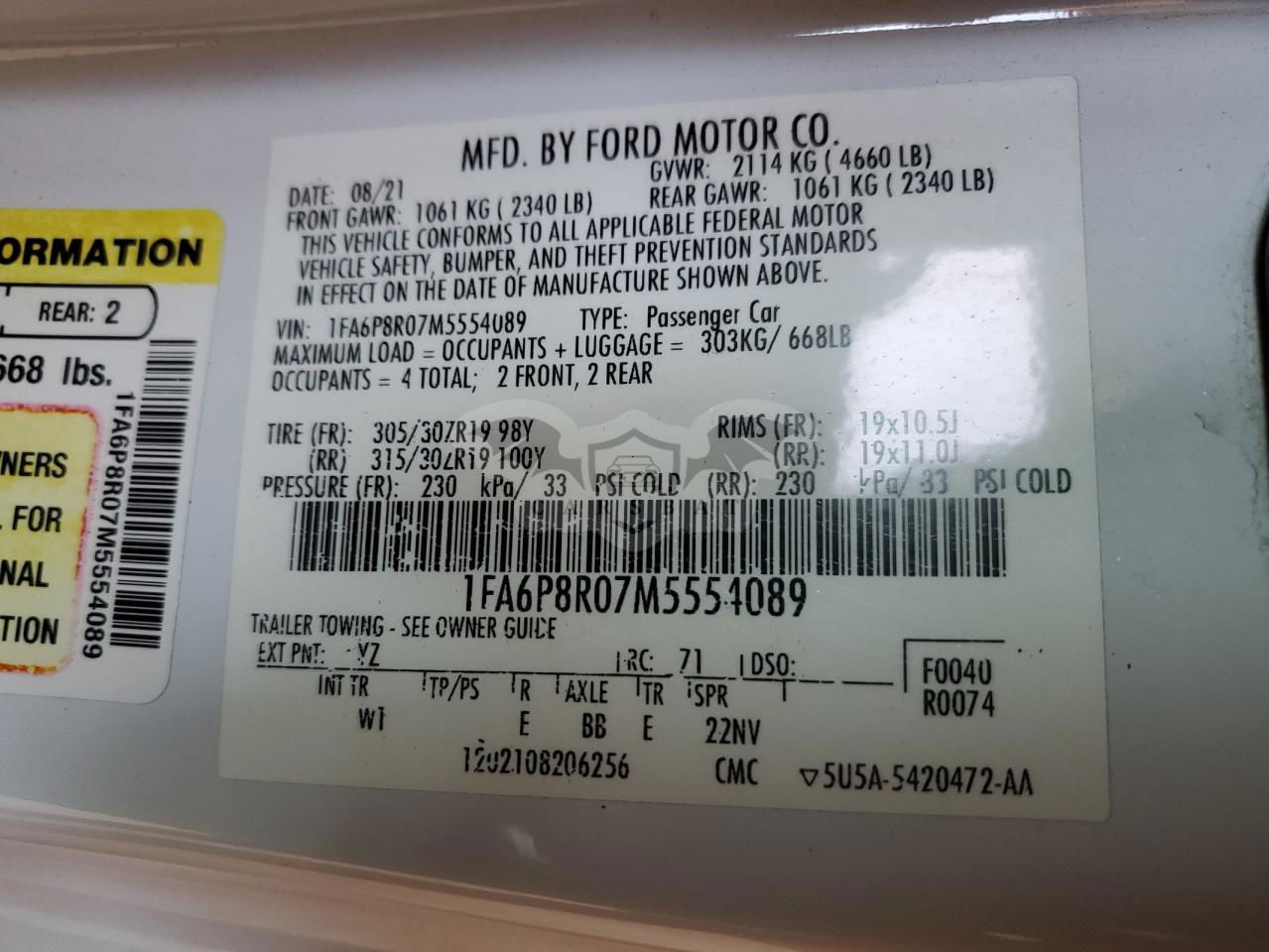 • VIN: 1FA6P8R07M5554089