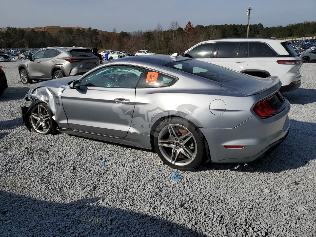 Srebrny Ford Mustang 2.3L 4 2021 roku | Benzyna