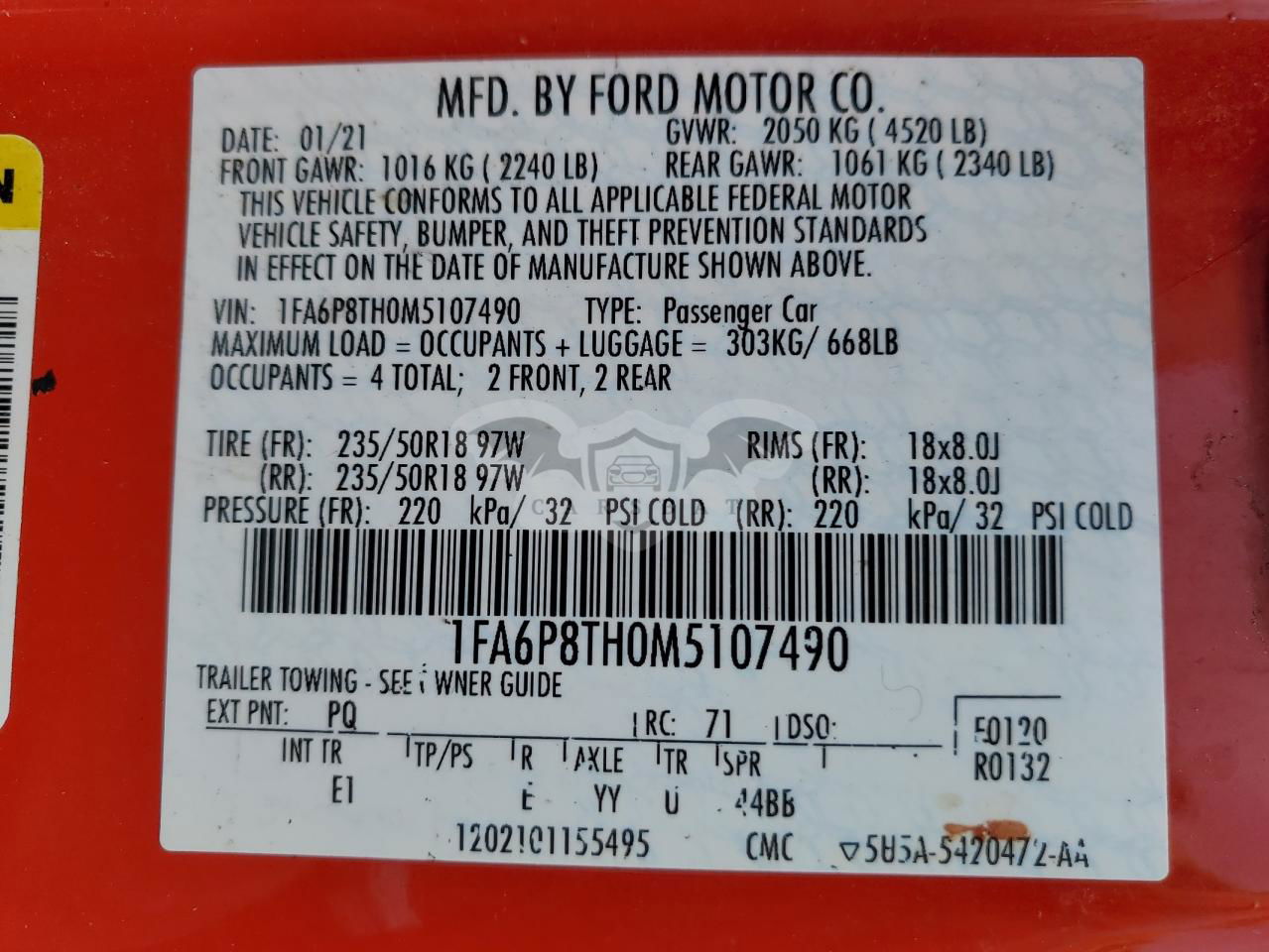 • VIN: 1FA6P8TH0M5107490